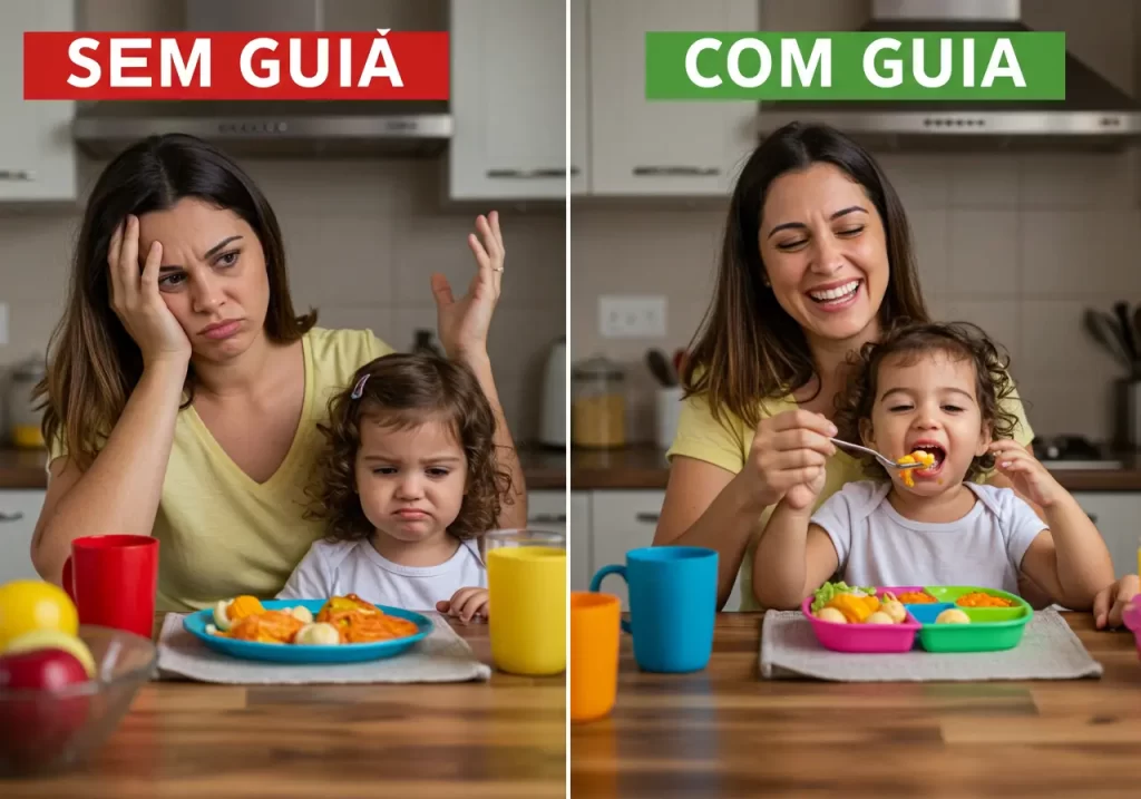Sim! O guia foi criado pensando justamente nas mães que já tentaram de tudo. Ele traz estratégias lúdicas e criativas para tornar o momento da refeição mais leve e eficaz.